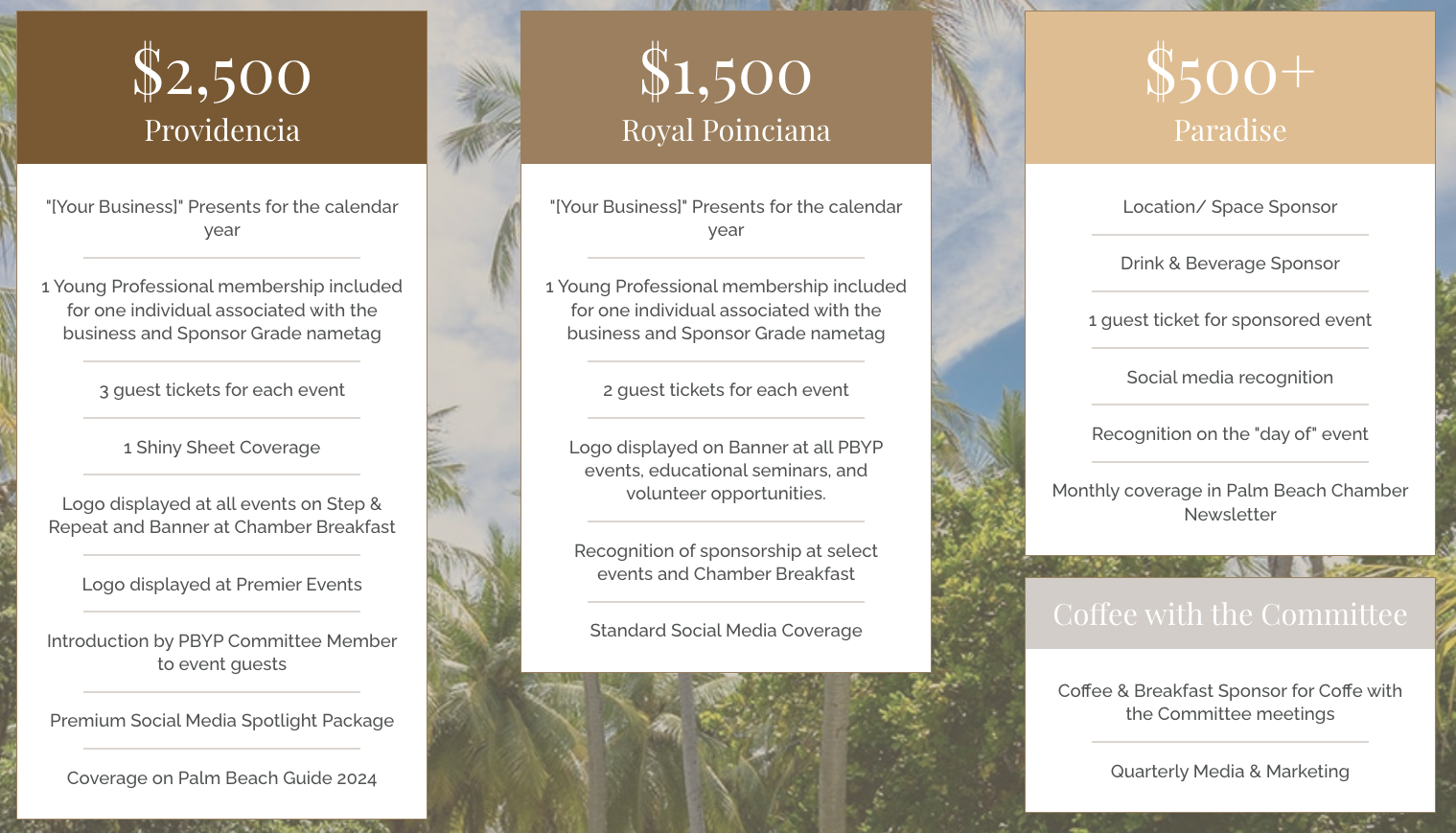 Sponsorships are a comprehensive and effective way to reach a targeted audience of influencers and decision makers in Palm Beach and the region.